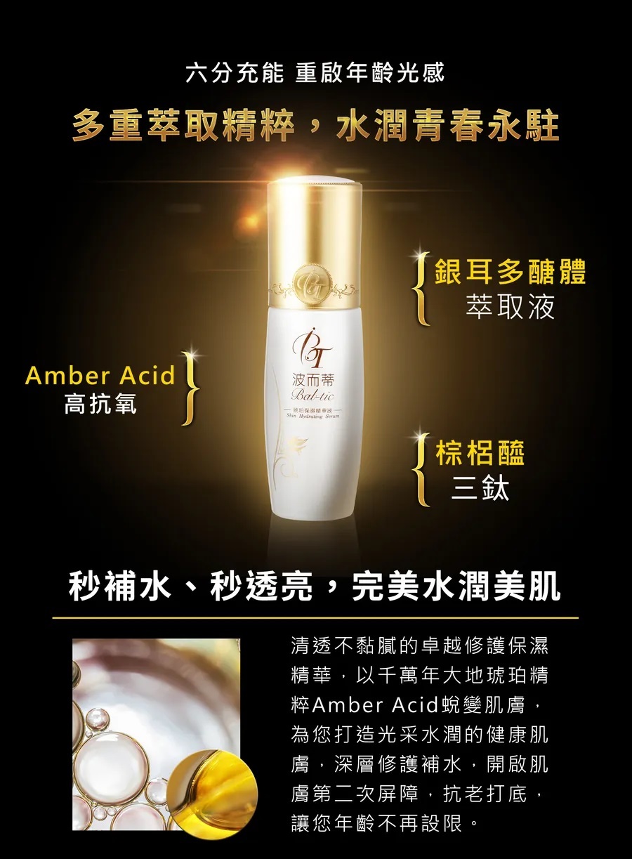 輕透水潤的深層修護以大地千萬年的Amber Acid蛻變肌膚。
